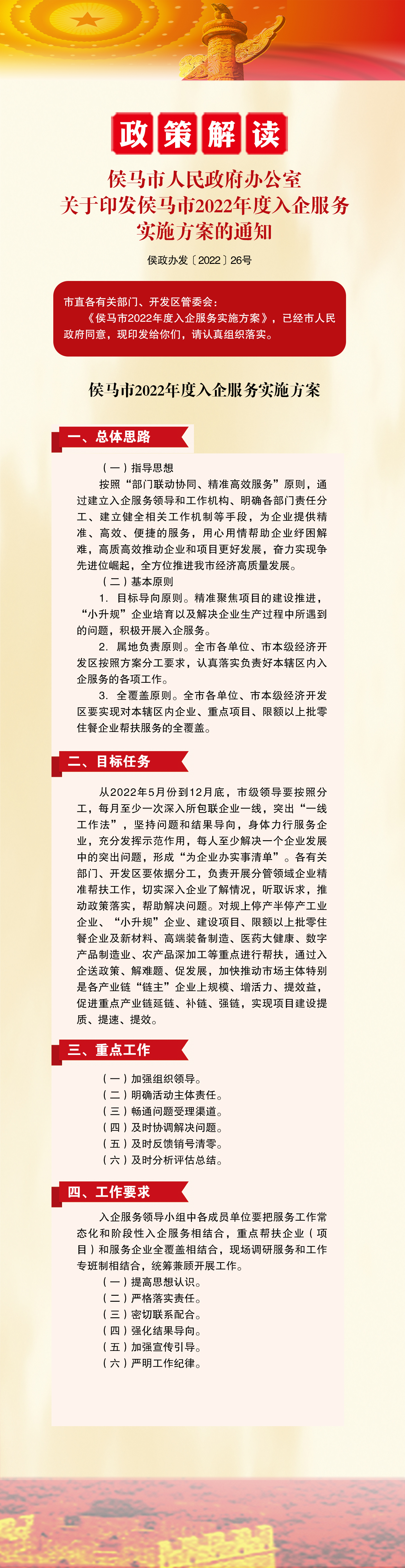 侯马市人民政府办公室 关于印发侯马市2022年度入企服务 实施方案的通知